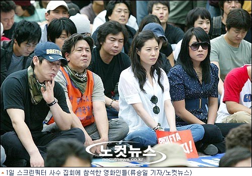بعد تولي إدارة روه مو هيون منصبه في عام 2003، مارست الحكومة الأمريكية ضغوطًا على المفاوضات الثنائية لقطاع الخدمات في منظمة التجارة العالمية واجتماعات الأعمال الكورية الأمريكية لإزالة حصة الشاشة، وكانت هناك آراء بين المسؤولين المحليين والمشرعين لإزالة حصة الشاشة. ونتيجة لذلك، شكل صانعو الأفلام "لجنة الإجراءات المضادة لكتاب الأفلام" في يوليو وبدأوا نضالاً شاملاً، وفي نوفمبر، أجلت الحكومة إلغاء حصة الشاشة. من ناحية أخرى، قررت وزارة الثقافة والسياحة حل مشكلة حصة الشاشة عن طريق ربط الحصة السوقية، لكن لم يحدث تقدم بسبب معارضة صانعي الأفلام. أدى طلب الانفتاح إلى مفاوضات اتفاقية التجارة الحرة بين كوريا والولايات المتحدة في عام 2006. في 13 يناير، أعلنت الحكومة الكورية فجأة أنه سيتم تقصيرها إلى 73 يومًا من خلال مراجعة المرسوم التنفيذي لقانون الترويج للأفلام ومقاطع الفيديو قبل مفاوضات اتفاقية التجارة الحرة بين كوريا والولايات المتحدة اعتبارًا من 1 يوليو من أجل تسريع المفاوضات. لكن حتى هذا لم يكن كافيًا بسبب الإرادة القوية للحكومة، والتي أصبحت أحد العوامل التي أدت إلى حدوث أزمة في صناعة السينما الكورية في أواخر العقد الأول من القرن الحادي والعشرين. في اتفاقية التجارة الحرة بين كوريا والولايات المتحدة، تم الاتفاق على حصة الشاشة كحجز حالي، ولا يتم التعرف على حصة الشاشة الحالية إلا حتى اليوم الثالث والسبعين، ولا يمكن زيادتها بعد الآن. من ناحية أخرى، لم تصبح اتفاقية التجارة الحرة بين كوريا والاتحاد الأوروبي قضية رئيسية.